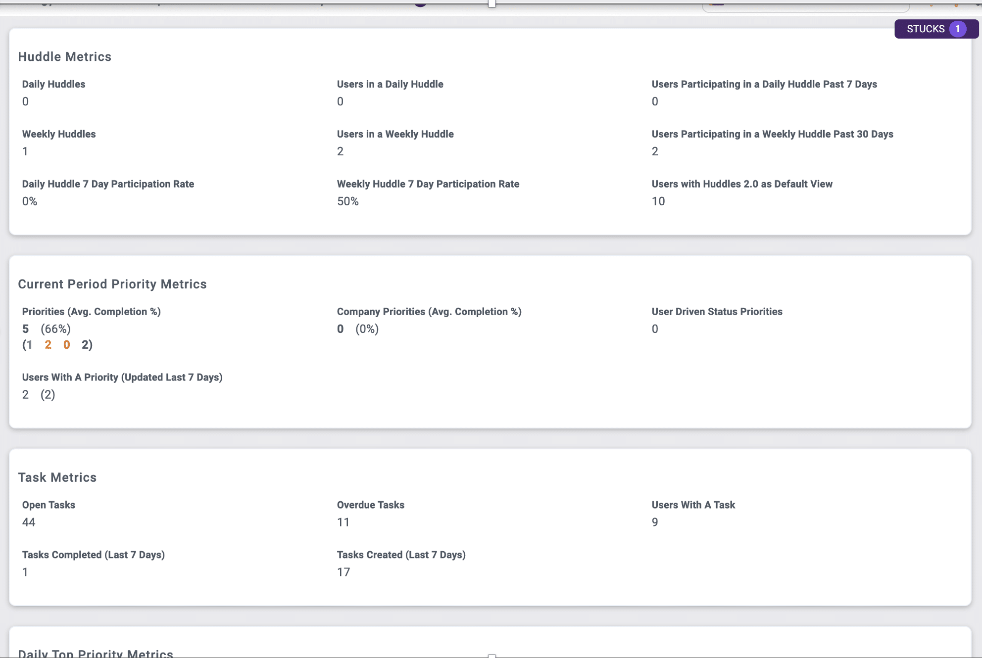 View rock habit execution metrics for each of your clients to go deeper on their use of the Scoreboard software.