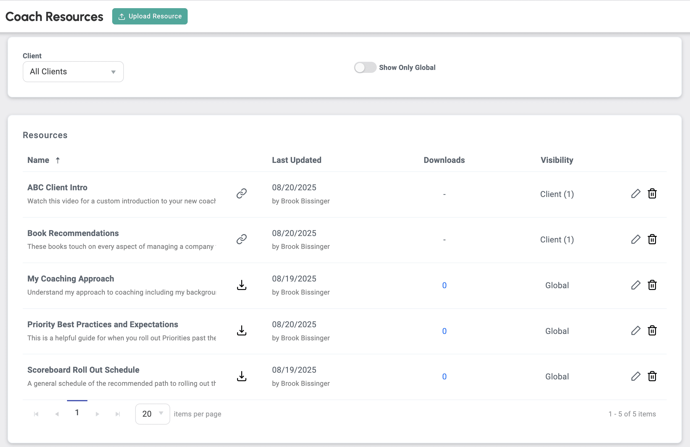 - Once a Global or Client Specific resource has been added, the Resources menu will be visible for your clients.