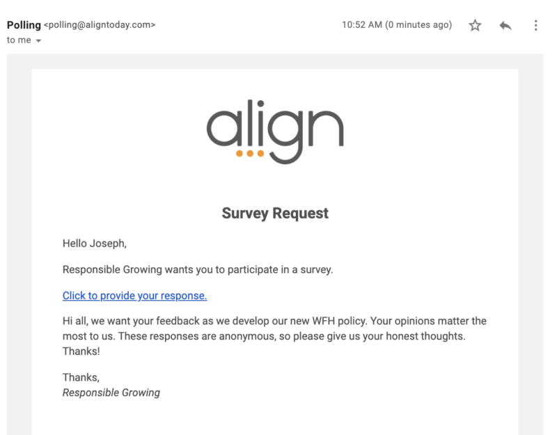 Your Employer Net Promoter Score cultivates employee advocacy with a one-question survey asking employees to rate their satisfaction at work. By turning engagement into a trackable metric, you are better able to identify where efforts need to be made to improve your company culture. Whether you are in the office, remote, or in a hybrid model, eNPS is the handy tool to pulse check your organization.