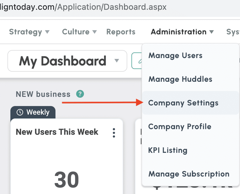 1. Go to the Administration > Align Settings page