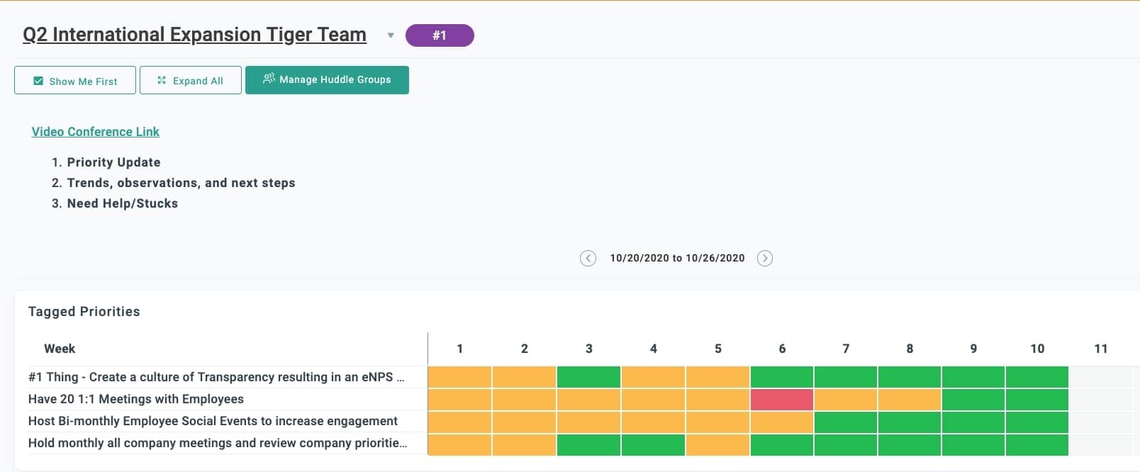 Hagerty employees use Align to track progress on over 600 individual priorities. In some cases, these are directly aligned with one of the top five corporate priorities. In other cases, these priorities are aligned “organizationally” rolling up to their manager’s priorities. Hagerty conducts a monthly business update meeting for all Hagerty managers. The information for this meeting comes directly from Align. They even create a video called “On the Same Page” to help communicate their priorities.