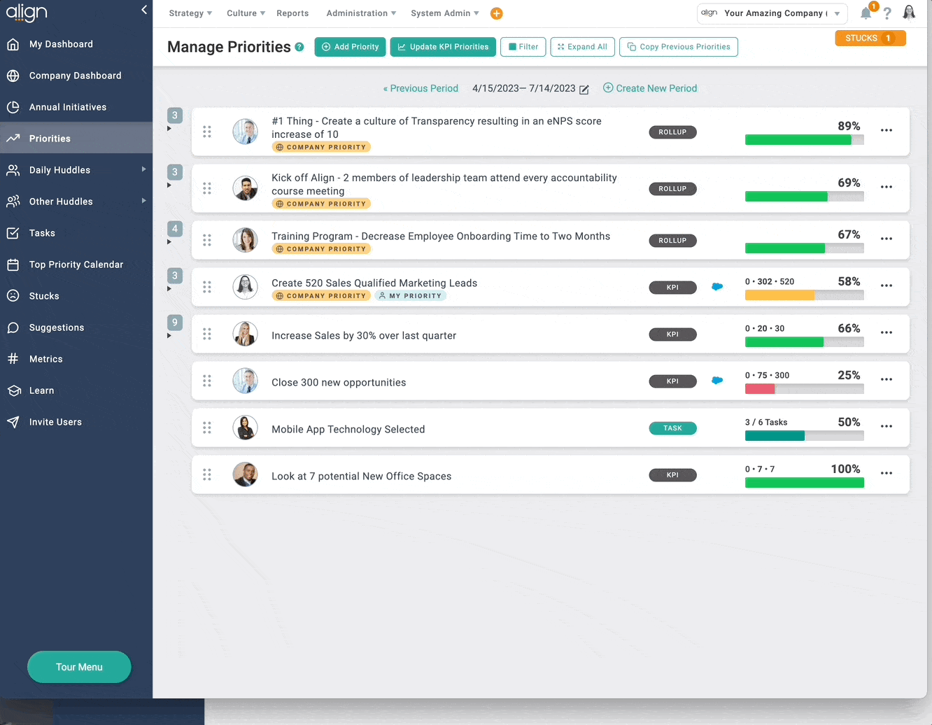 Priorities describe the destination, not just the journey – making it clear what you’ll have achieved when the quarter ends.