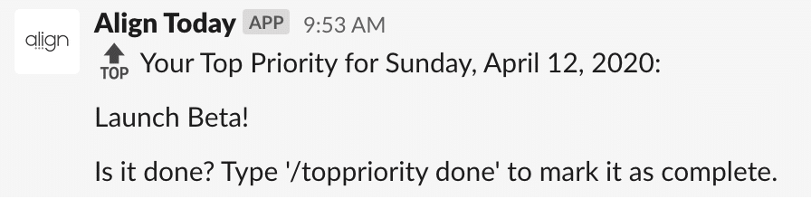 If today’s Top Priority isn’t complete, you’ll get a message like this: