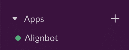 - Now your Align user is connected to Slack! You should see “Alignbot” under the Apps section on your Slack menu: