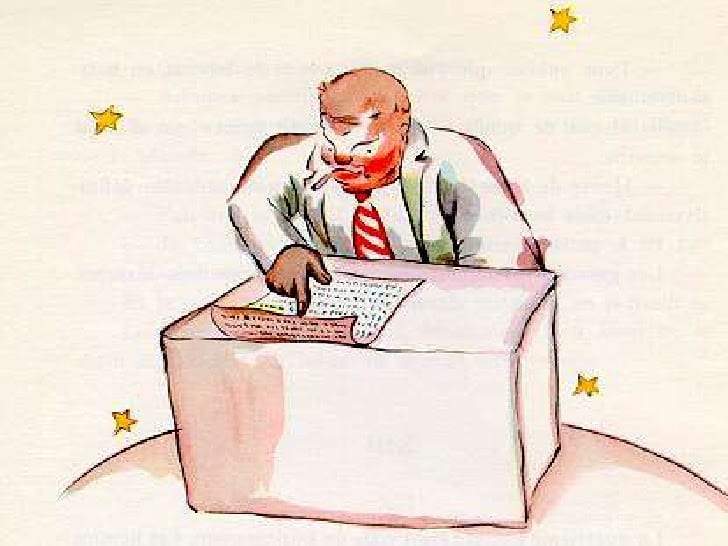 “I administer them,” replied the businessman. “I count them and recount them. It is difficult…I write the number of my stars on a little paper. And then I put this paper in a drawer and lock it with a key.”